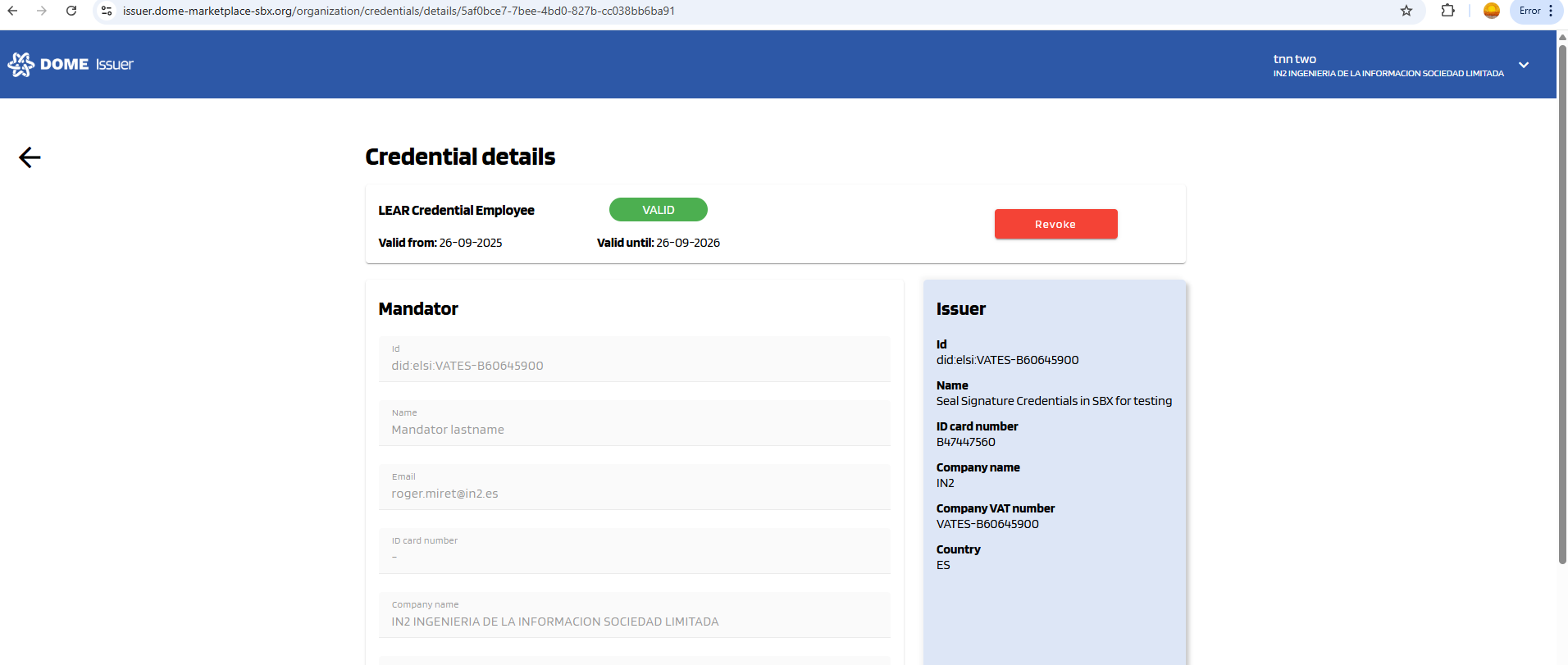When a credential has status "VALID", you will see a "Revoke" button in the "Actions" box. See the "Credential Revokation" page to learn more about it.