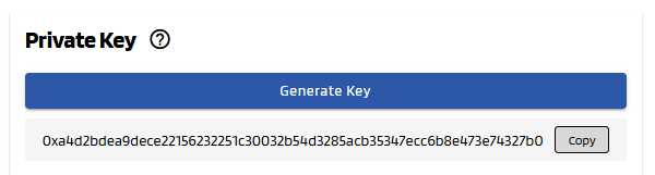 Click on the "Generate Key" button. This will create a private key that you need to copy and store safely, since it is associated to the Mandatee ID (did-key) that will be assigned to your credential. You will need it, for instance, for the Verifier integration. After the credential issuance, there won't be any way to recover it, so store it carefully.