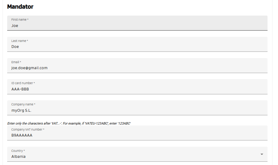 Fill all the Mandatee fields of the form, which are marked with a "*" symbol. The fields without "*" are optional --you can left them empty.