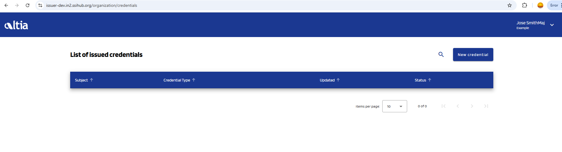 You will enter the issued credentials list view