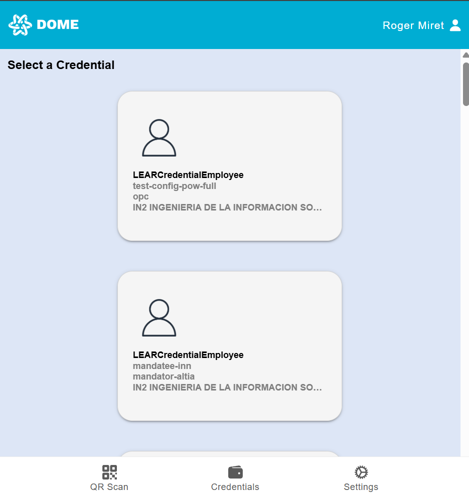 After scanning, your Wallet will display the list of available credentials. You can scroll down in case you have multiple available credentials.