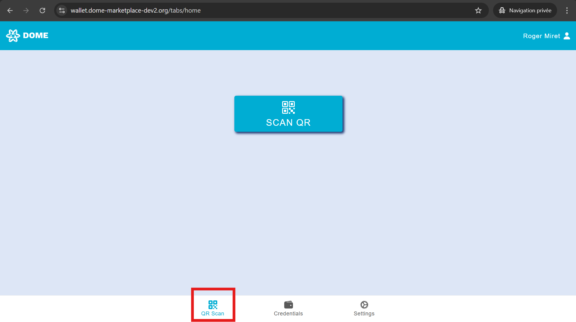 Go to the “QR Scan” tab (the app usually navigates there automatically after loggin in) and tap the “SCAN QR” button.