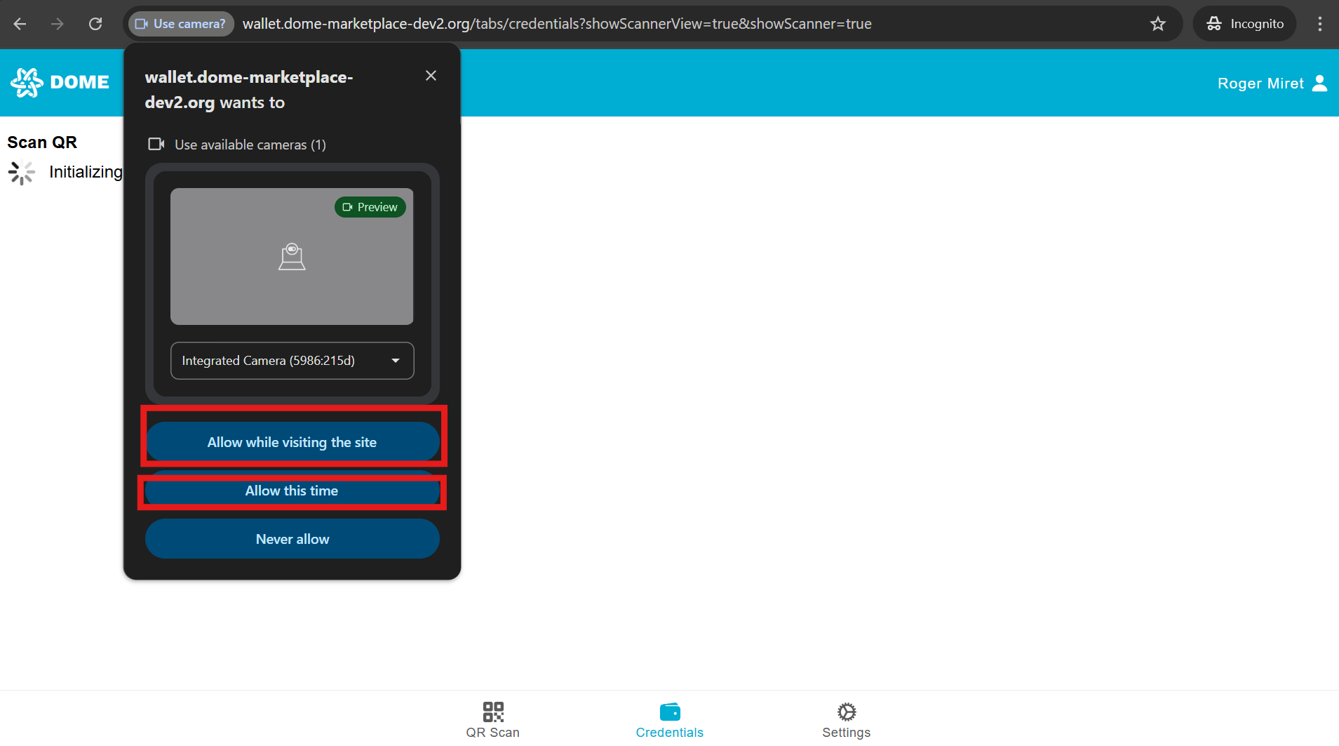 Before you can accept a Credential Offer, you must be registered in the DOME Digital Wallet.